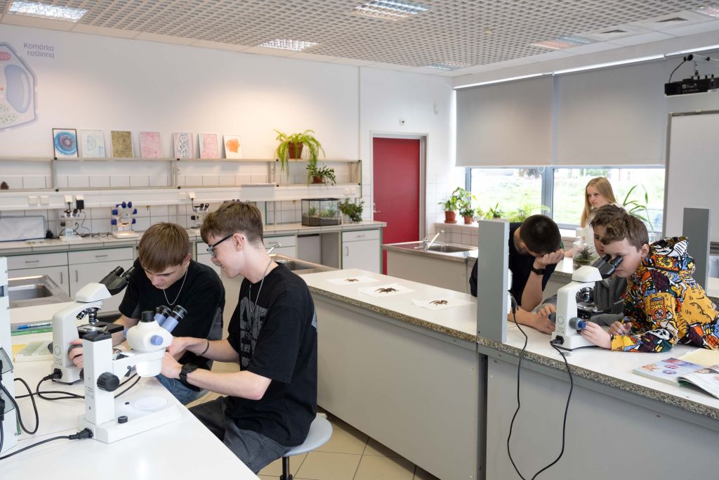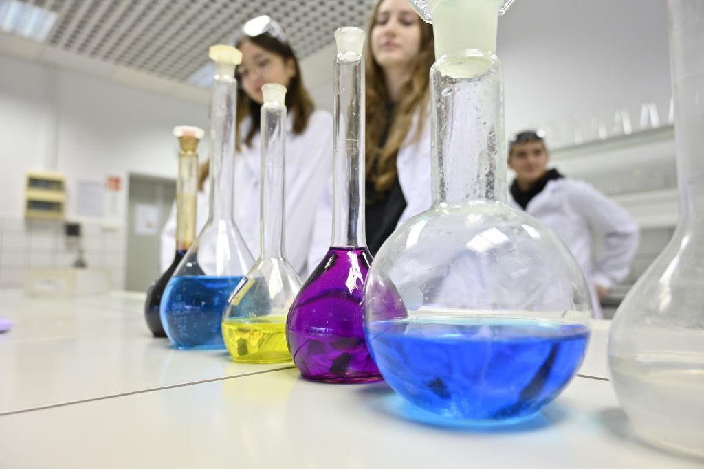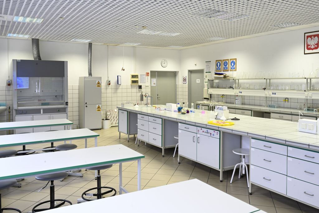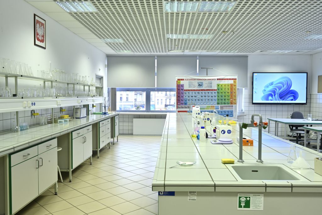 Laboratorium chemiczne to miejsce, w którym nauka łączy się z praktyką. Nasi uczniowie mogą tu eksperymentować, obserwować reakcje chemiczne i sprawdzać to co napisane w podręczniku. Pracownia chemiczna wyposażona jest w szkło laboratoryjne, odczynniki, co pozwala bezpiecznie i ciekawie prowadzić doświadczenia. Posiadamy nowoczesną tablicę, dzięki której pisanie równań chemicznych i rozwiązywanie zadań ze stechiometrii jest dużo przyjemniejsze.