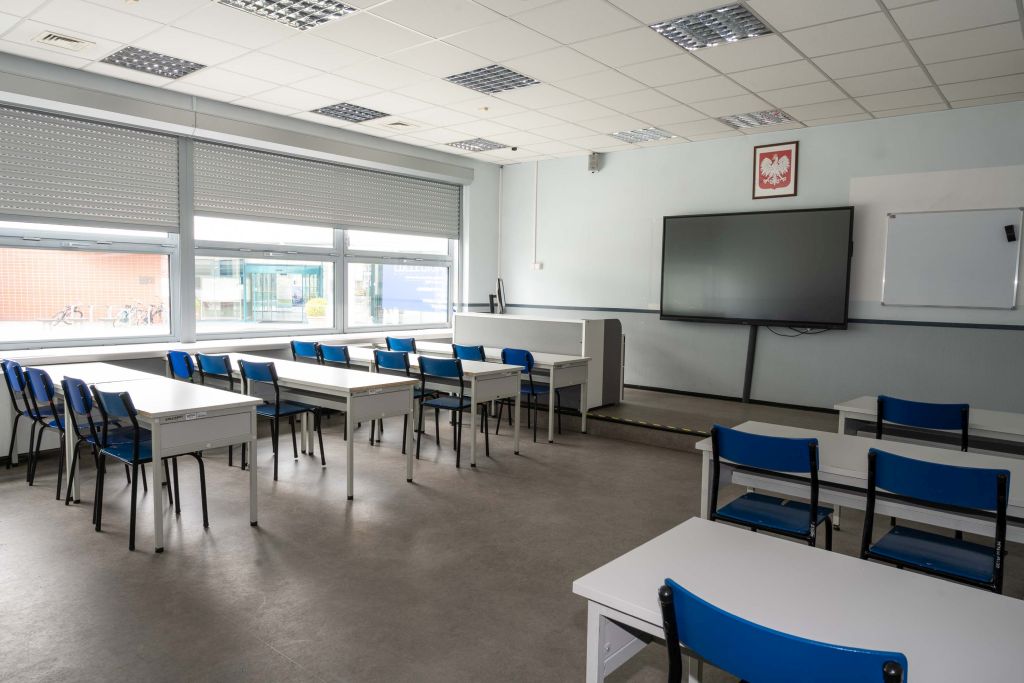Klasy lekcyjne są klimatyzowane, wyposażone w tablice multimedialne. W całym budynku dostępny jest Internet bezprzewodowy.