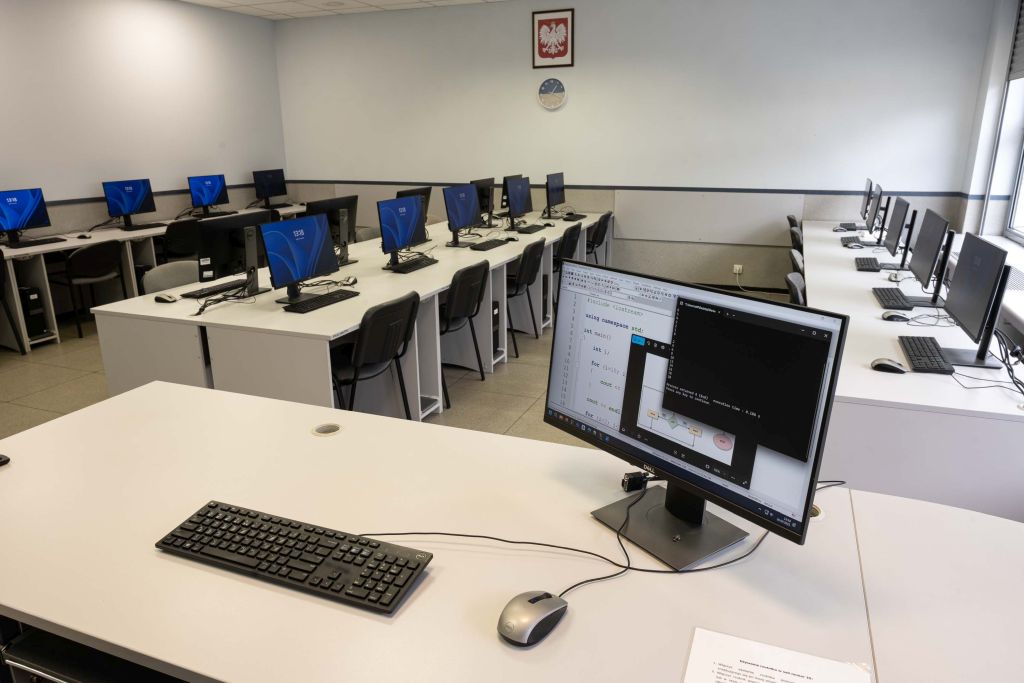Pracownia komputerowa jest wyposażona w 20 indywidualnych stanowisk komputerowych oraz tablicę multimedialną. Komputery działają pod systemem Windows 11, są podłączone do sieci LAN z dostępem do Internetu.